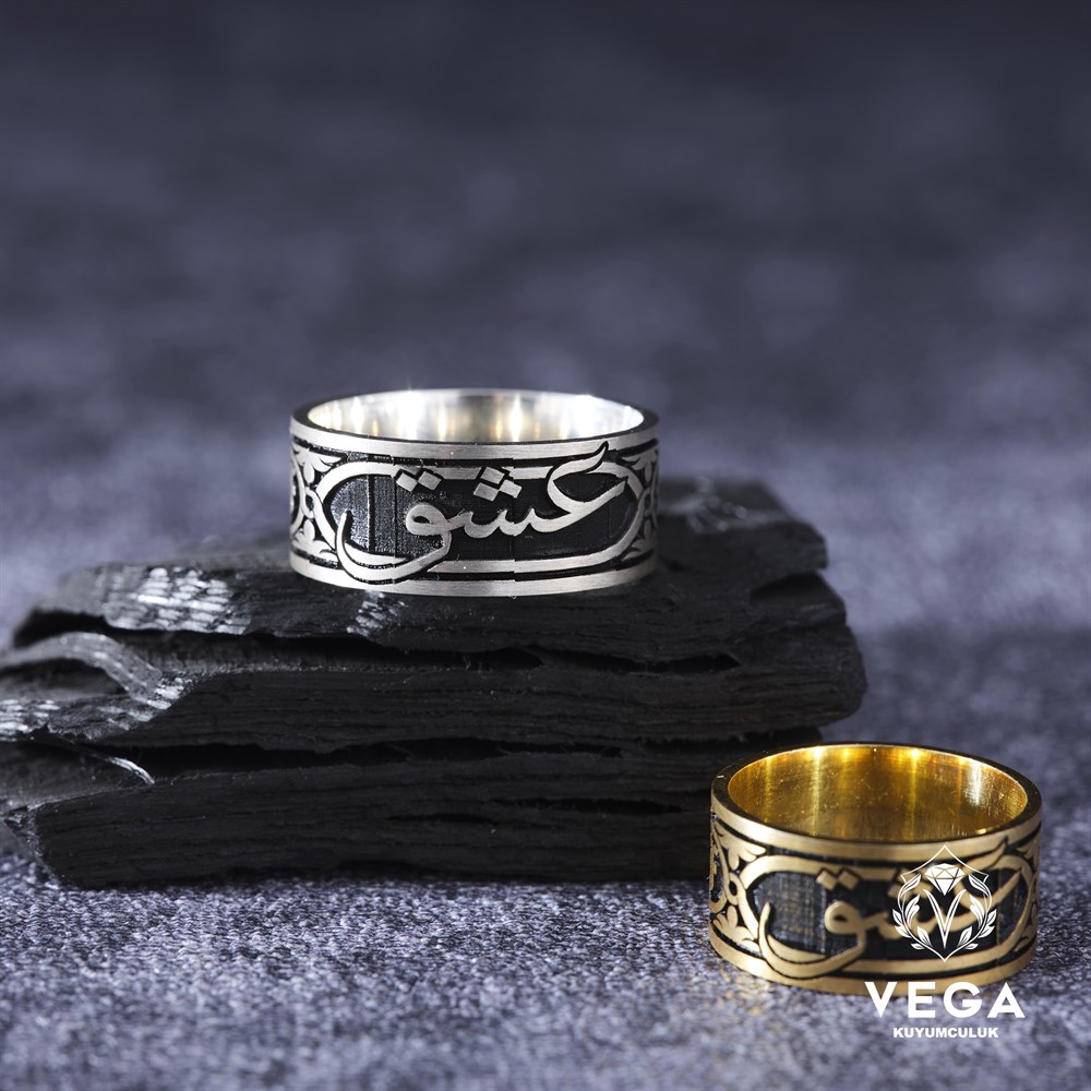 ✔Gümüş alyans yüzük modelimiz üzerinde arapça aşk yazmaktadır.