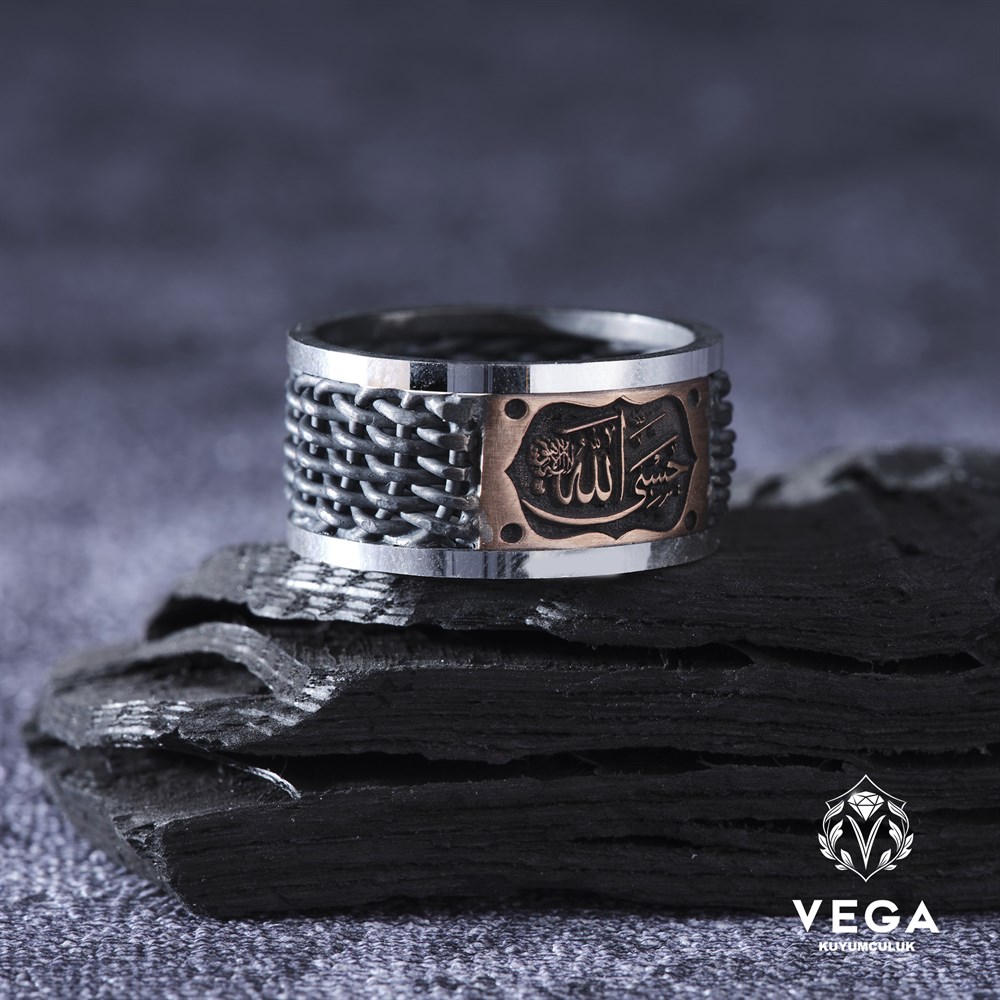 *Gümüş alyans yüzük modelimiz üzerinde Hasbiyallah yazmaktadır.