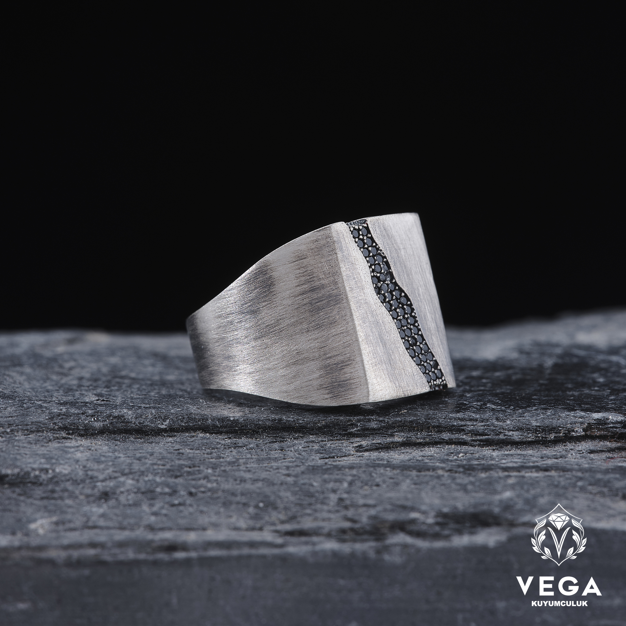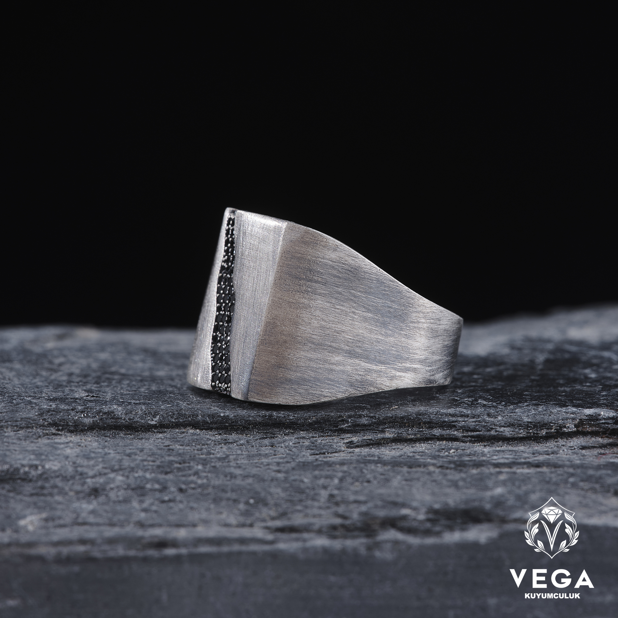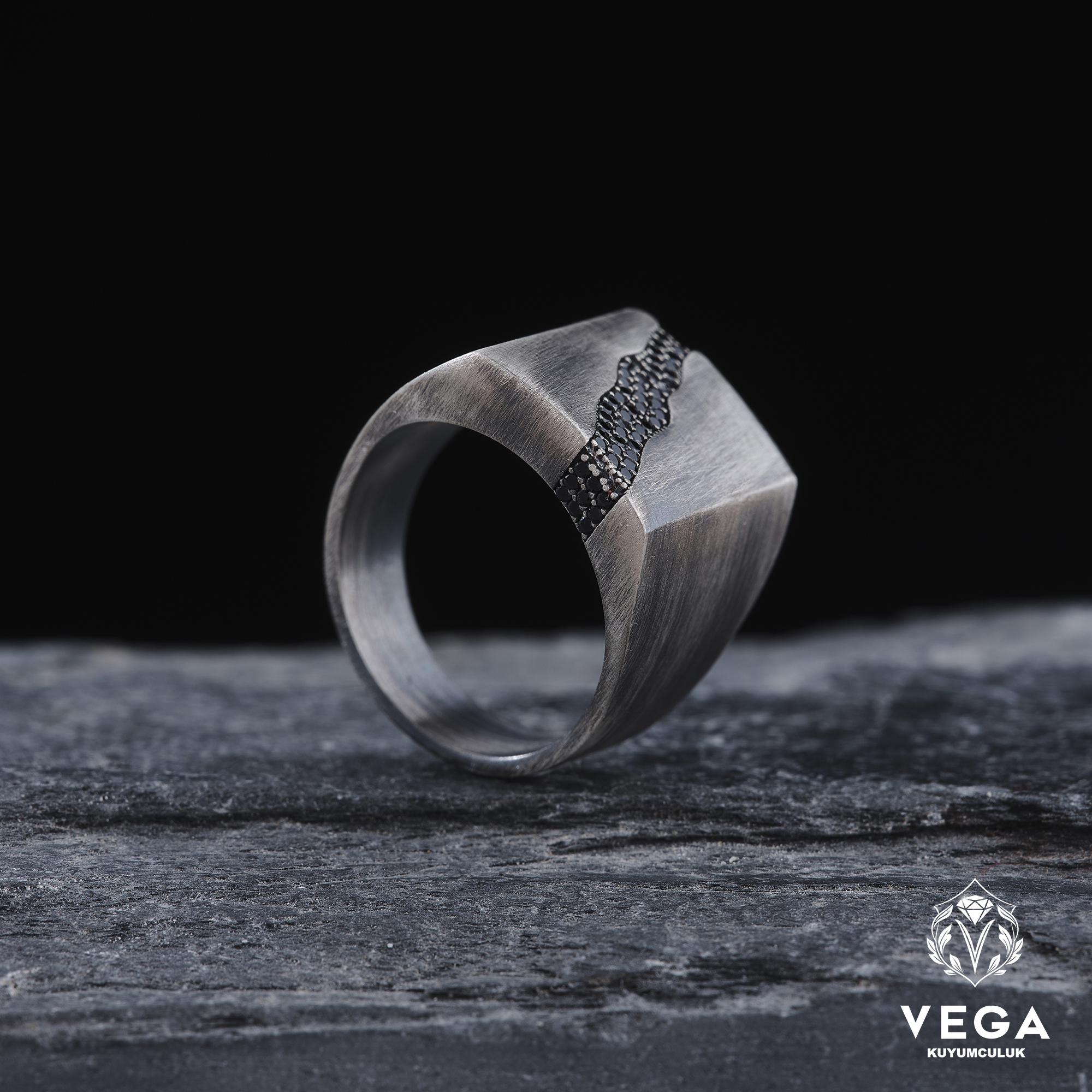 Vega Kuyumculuktan yeni bir model, mikro siyah zirkon taşlarla bezenmiştir.
